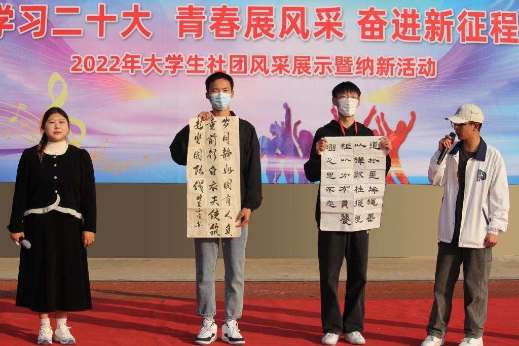 各学生社团结合自身特色,将党的二十大精神学习与社团活动相结合,编排了朗诵《红船的方向》、舞蹈《青春之歌》、手语《一起向未来》、书法《奋进新征程》、歌曲《我和我的祖国》等节目,引起全场观众的共鸣,赢得了大家的阵阵掌声。